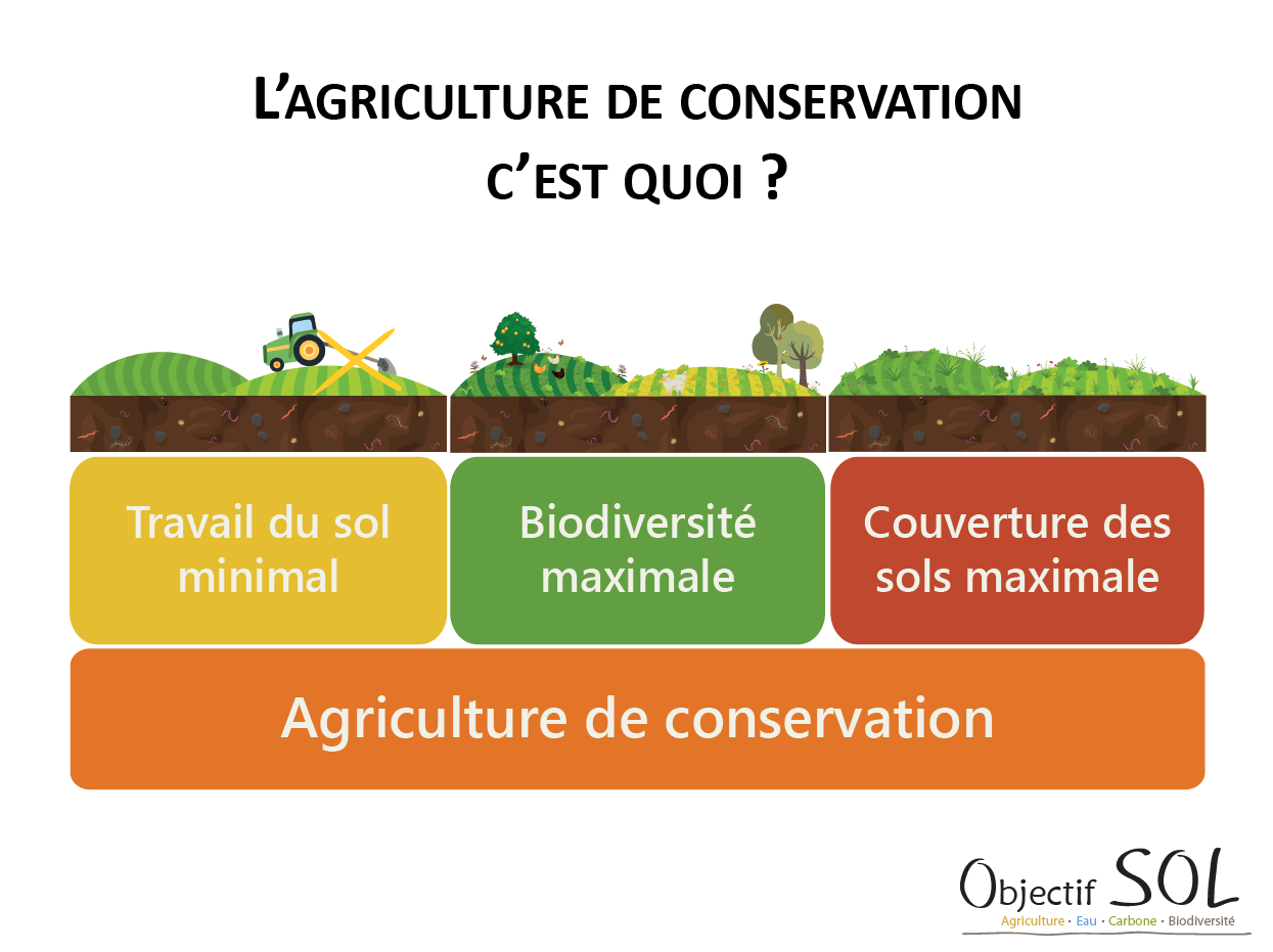 L’agriculture de conservation des sols (AC) repose sur trois piliers :